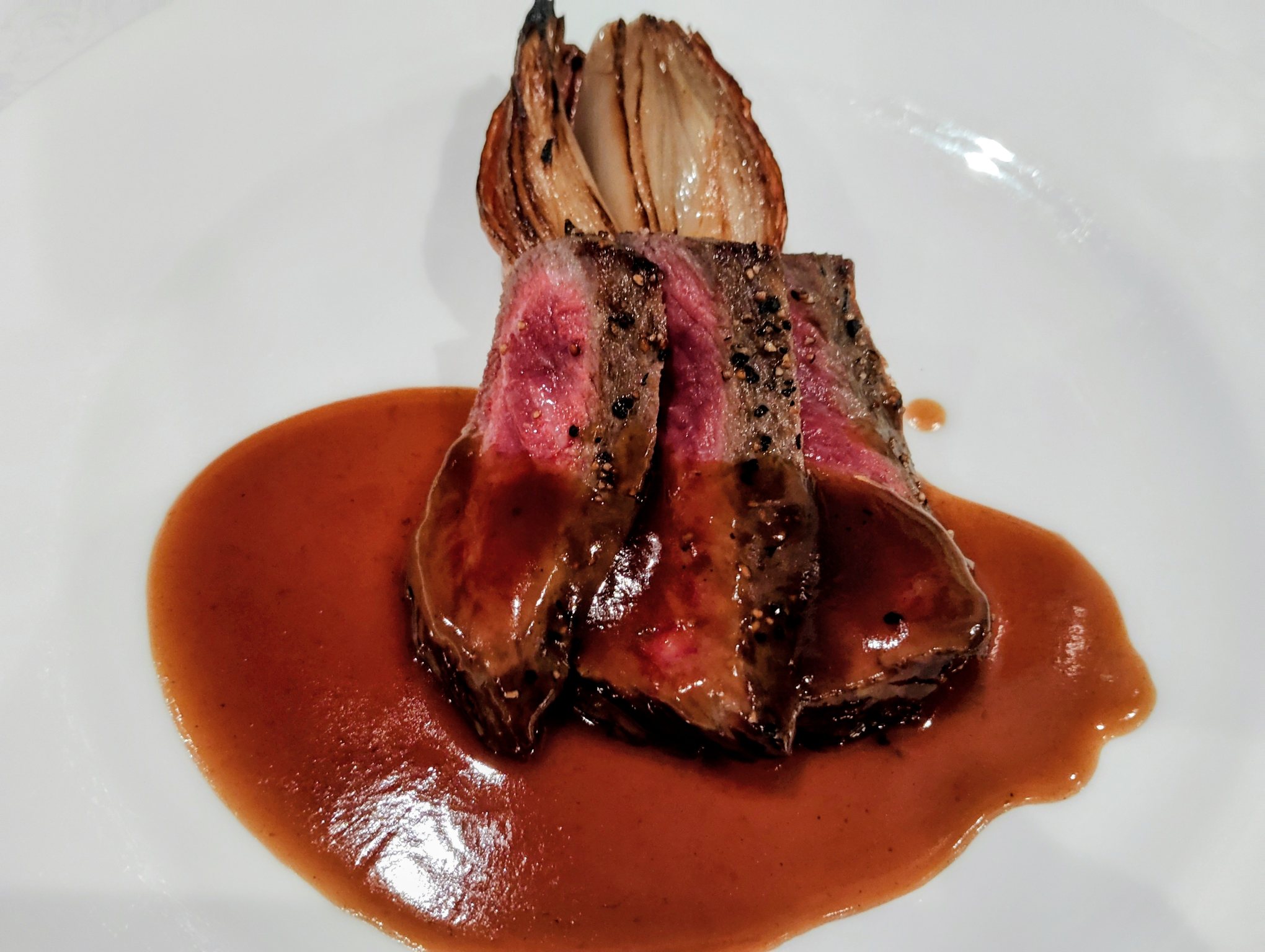 今まで食べた鹿肉とまた感じが違い、赤ワインとオレンジのソースがとても合い、