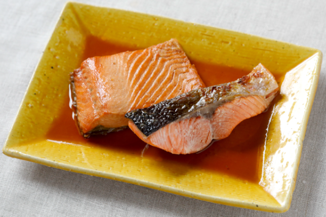 焼いた鮭をおしょうゆ、酒、みりん、を煮立て冷ました中につける食べ方。