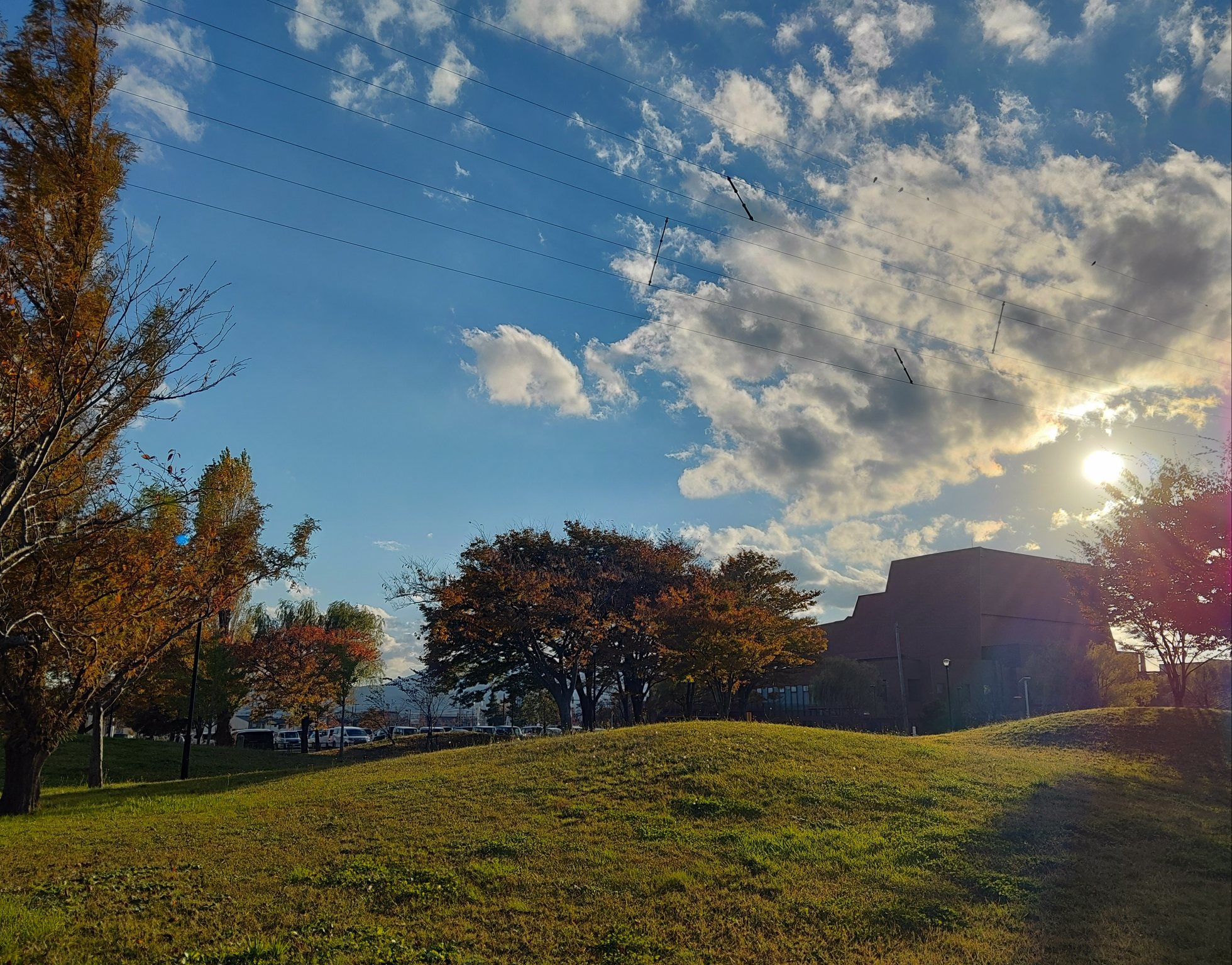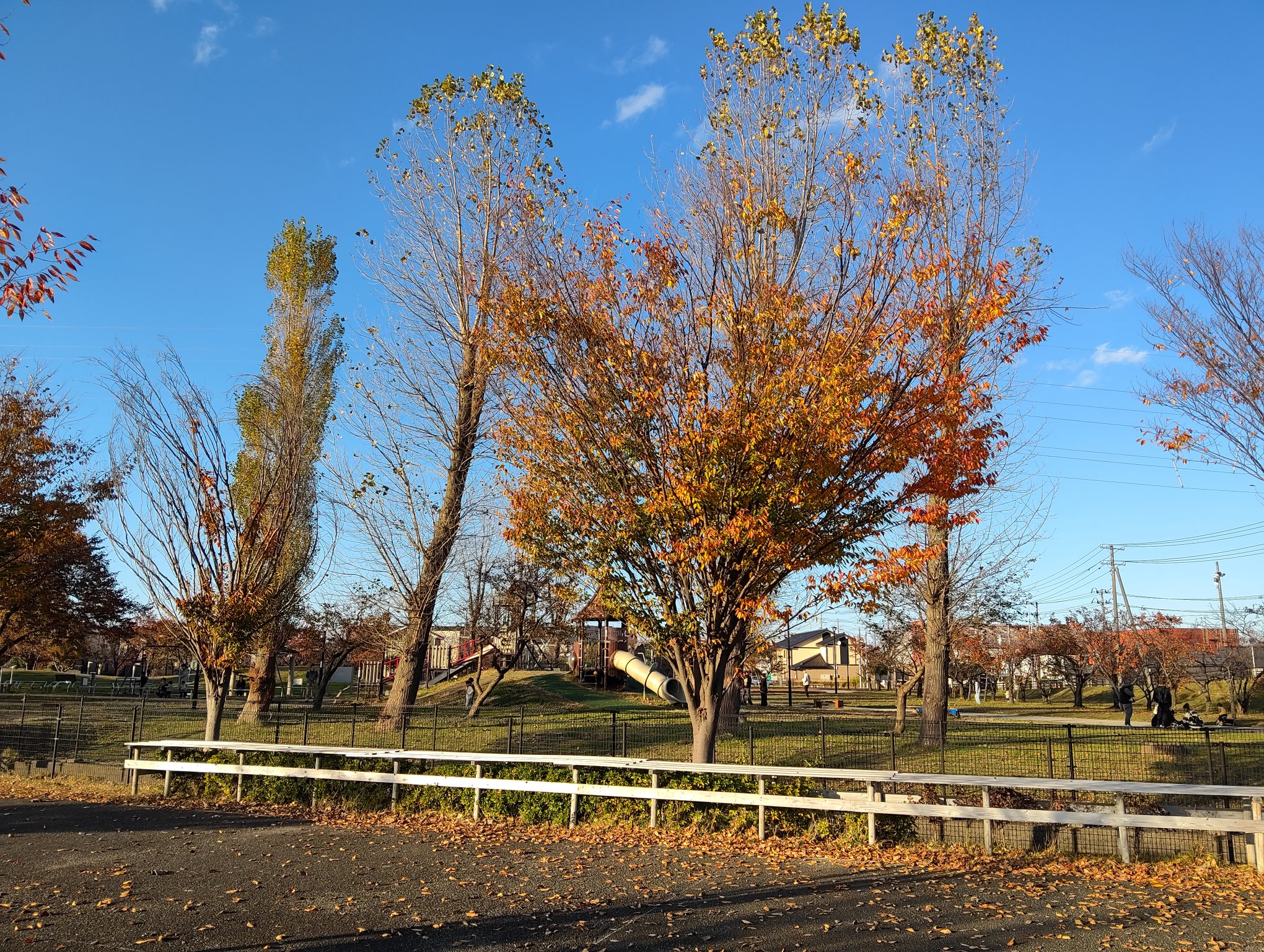 目の前の小道を通ってすぐ近くの駅前公園へ。