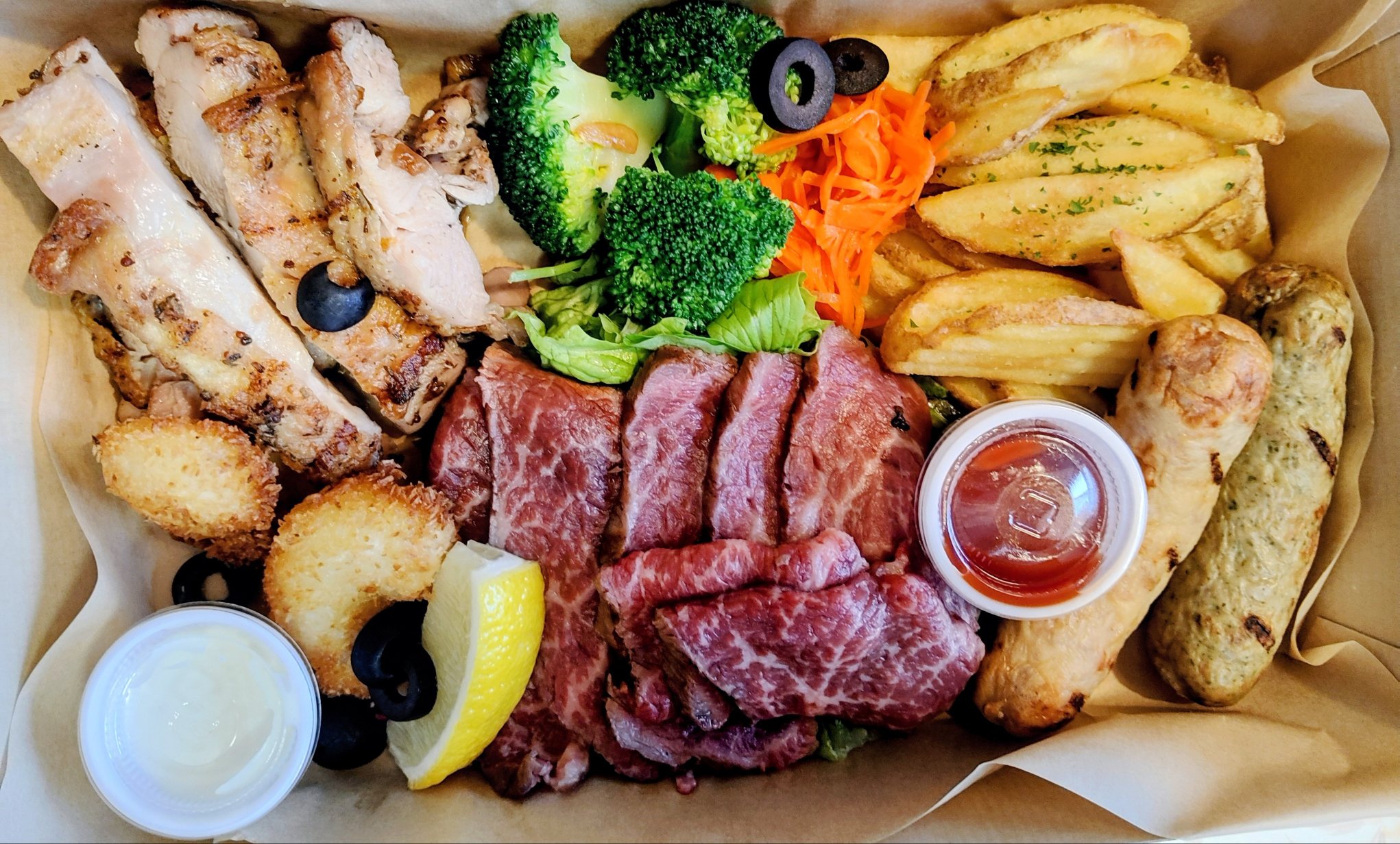 ハーブチキン、ココナツシュリンプ、越後牛ローストビーフ、生フランク、