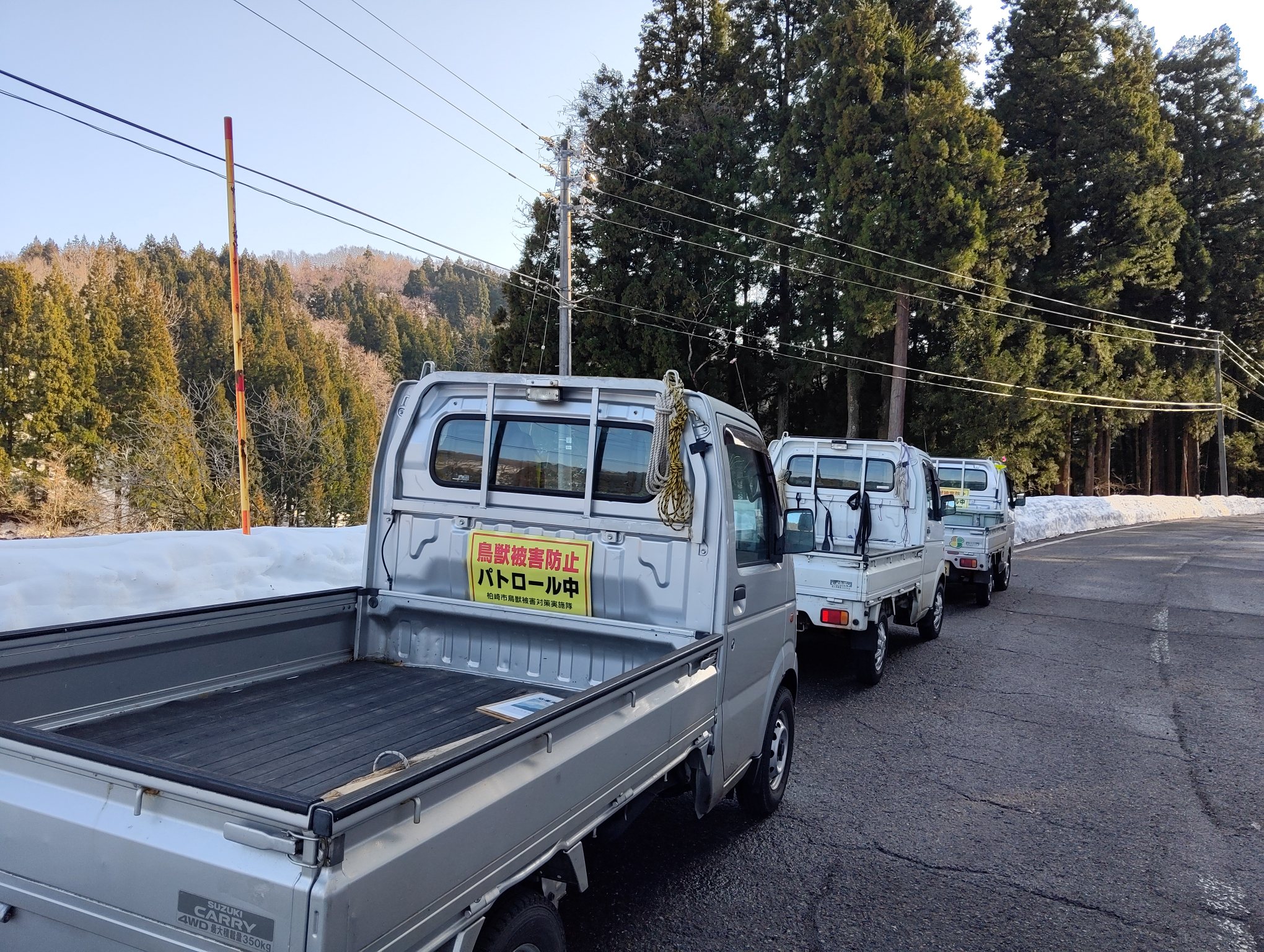 少し下ったところでは猟友会のパトロール車も3台。
