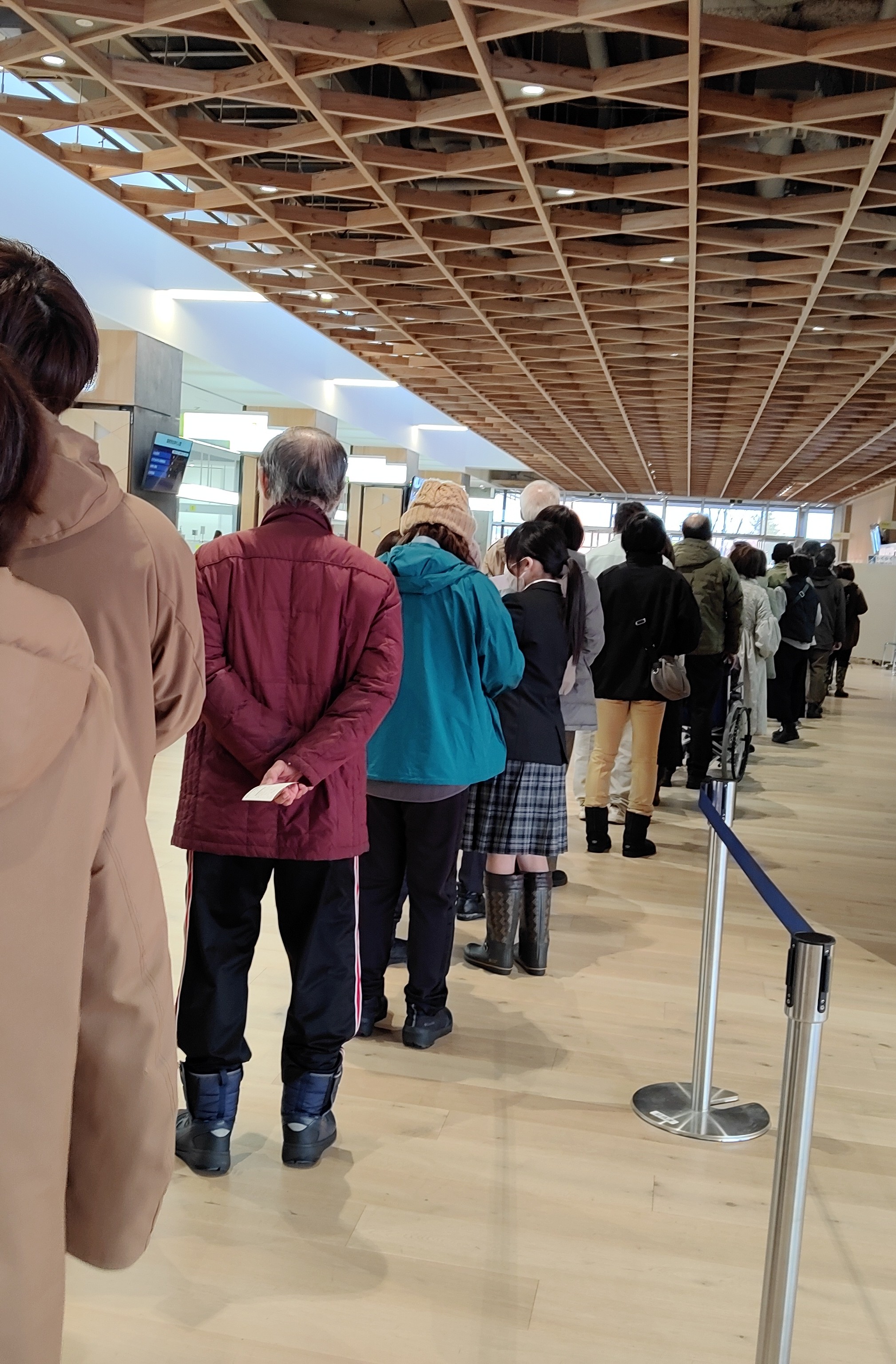 「こらダメだ、帰ろう。」待てないぺーちゃん、行列を見て、