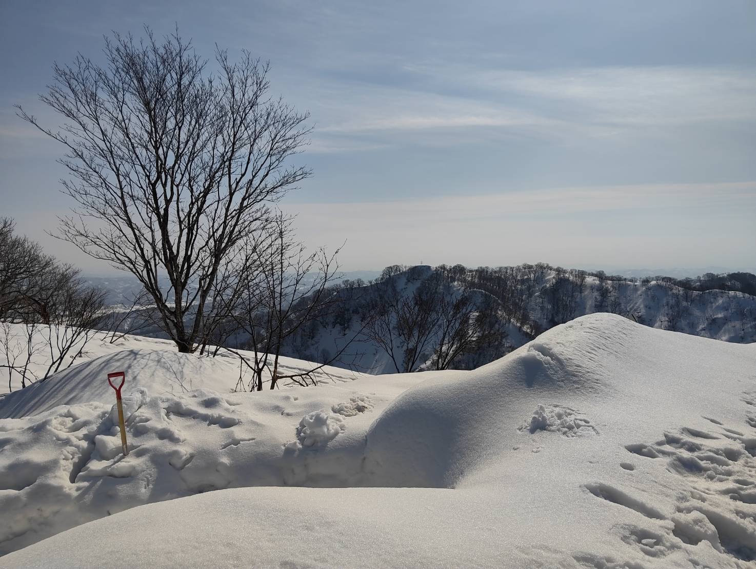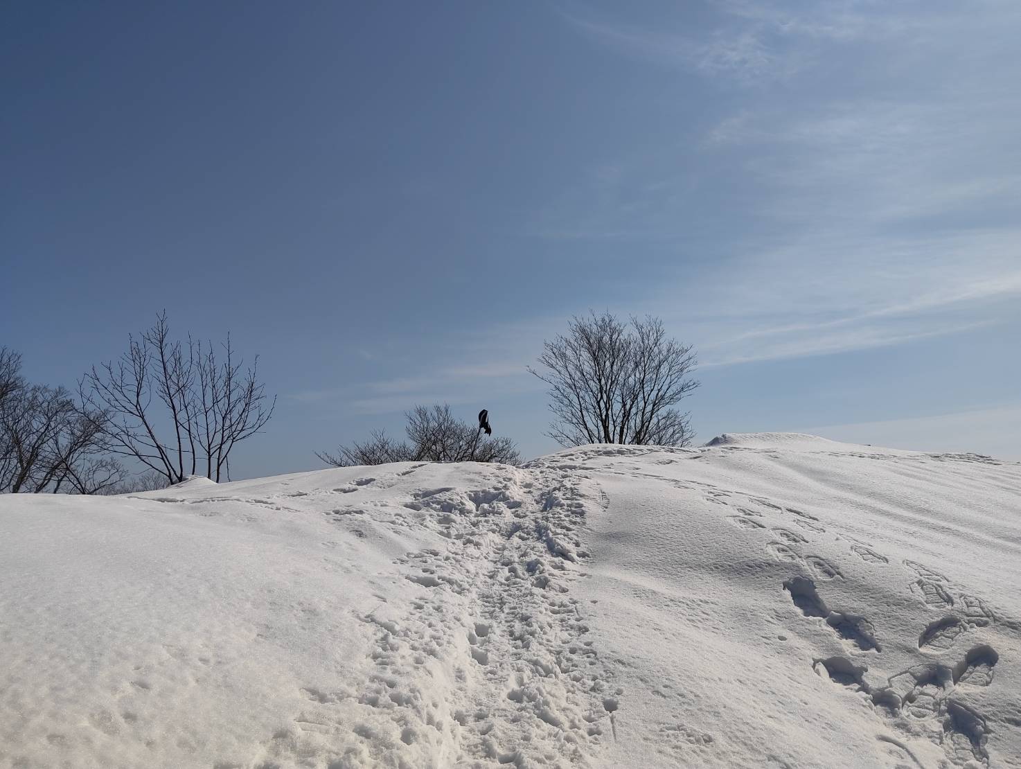 軽アイゼンを持って行かなかったので長靴がスポット雪の中にもぐってしまい抜けず、