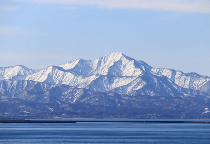 雪に覆われた白い米山さんがとても映える素敵なまち。