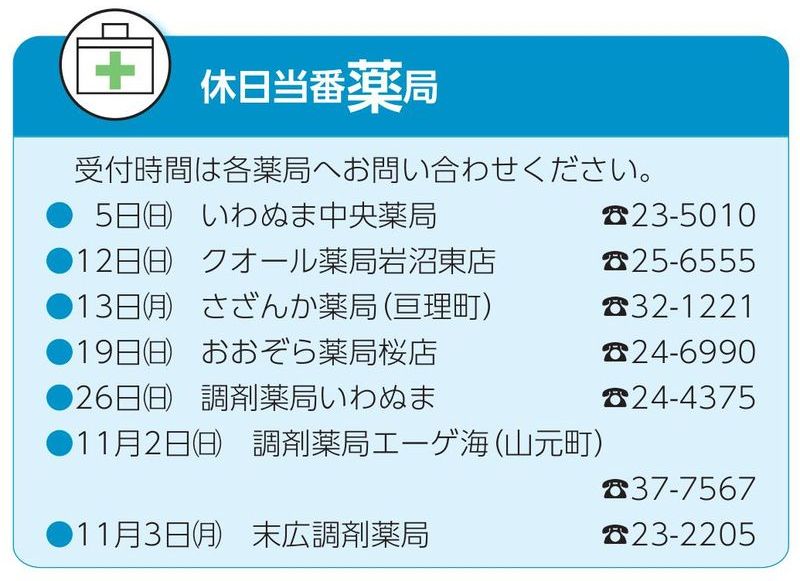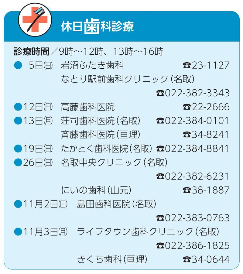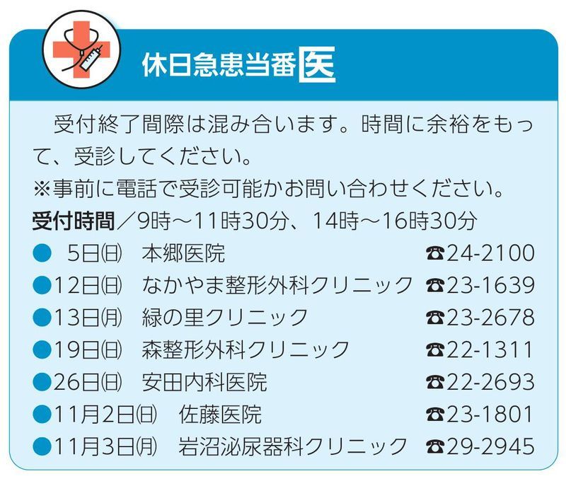 2025年10月 宮城県岩沼市の休日急患当番表をお届けいたします。