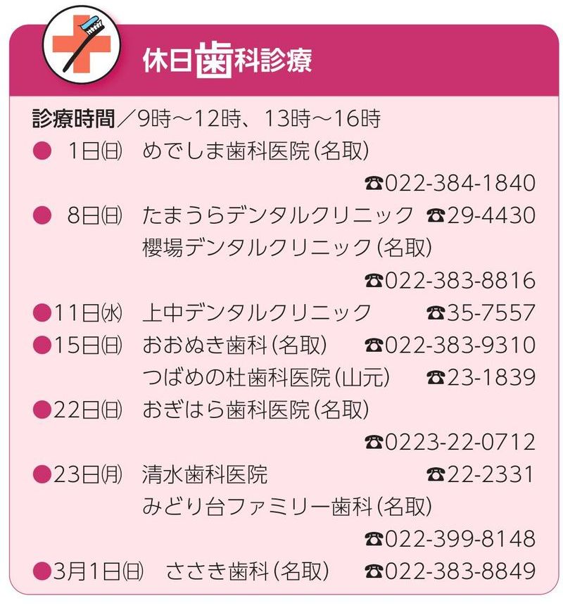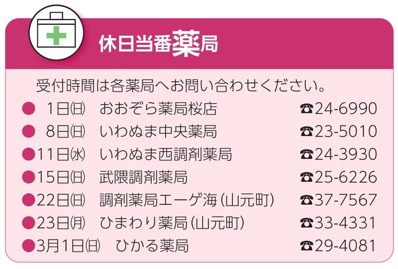 2026年2月 宮城県岩沼市の休日急患当番表をお届けいたします。