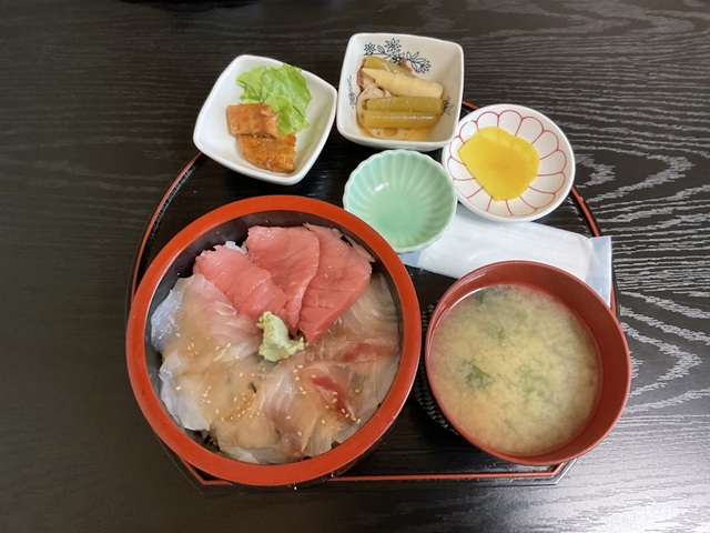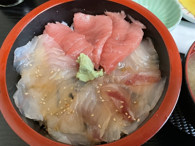 三色丼(マグロ・鯛・ヒラメ)を食べました