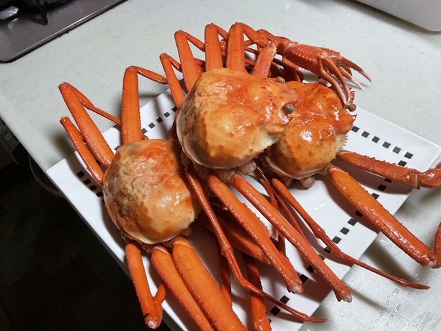 帰りに道の駅で入手してきたズワイガニ・・・・