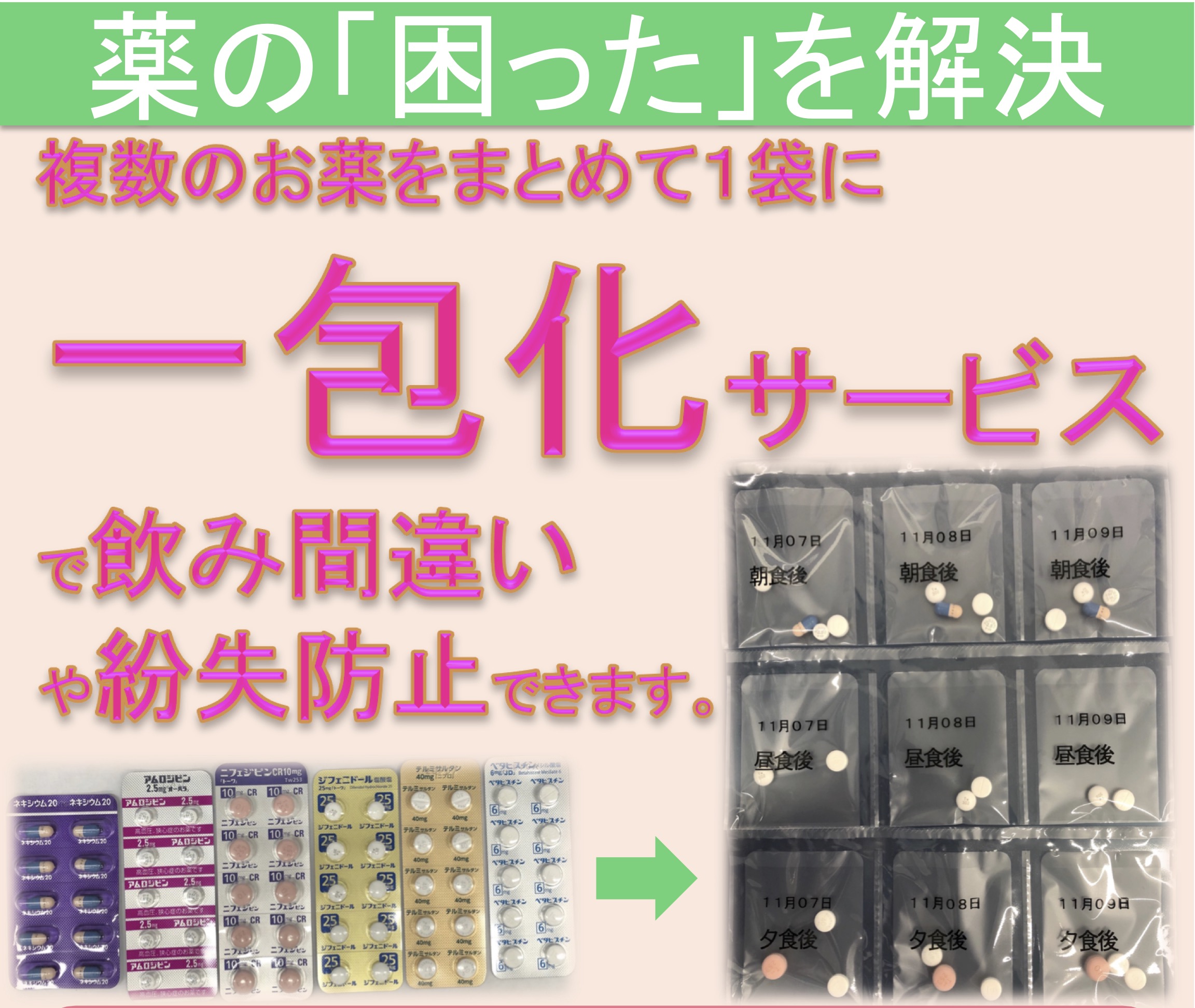 みやもと薬局長田町店では、専用の分包機を用いて一包化サービスを提供しています。